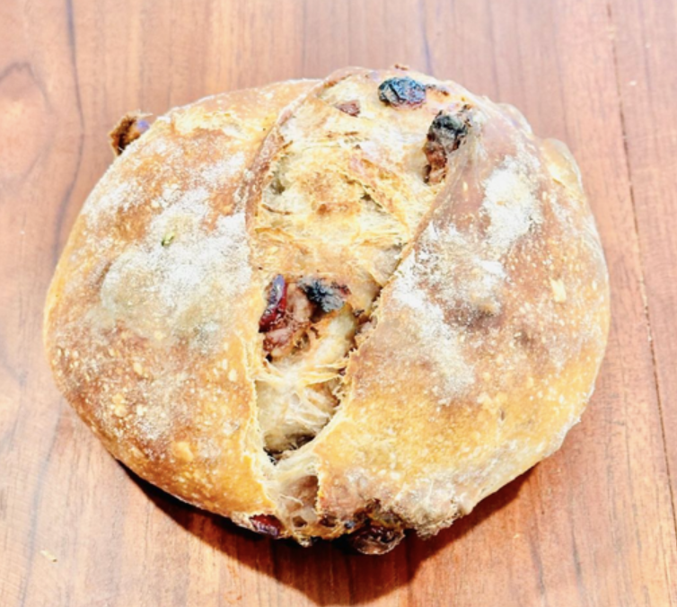 Ingredients: Sourdough Starter, Water, Bread Flour, Rye Flour, Wheat Flour, Craisins (Sweetened & Unsweeted), Roasted Walnuts, Goat Cheese, Salt
