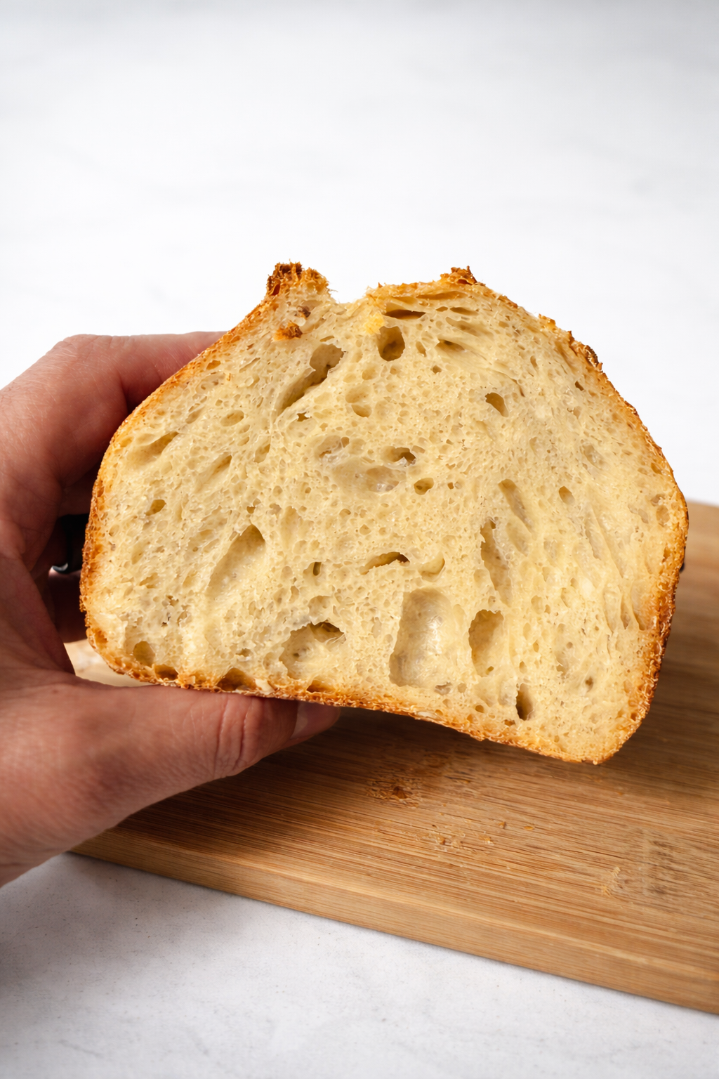 Description: This is a classic, naturally leavened sourdough loaf made with simple ingredients and a slow fermentation for maximum flavor and digestibility. Baked until deeply golden with a crisp crust and a soft, airy interior, this loaf is perfect for everyday slicing, toast, sandwiches, or enjoying warm with butter.