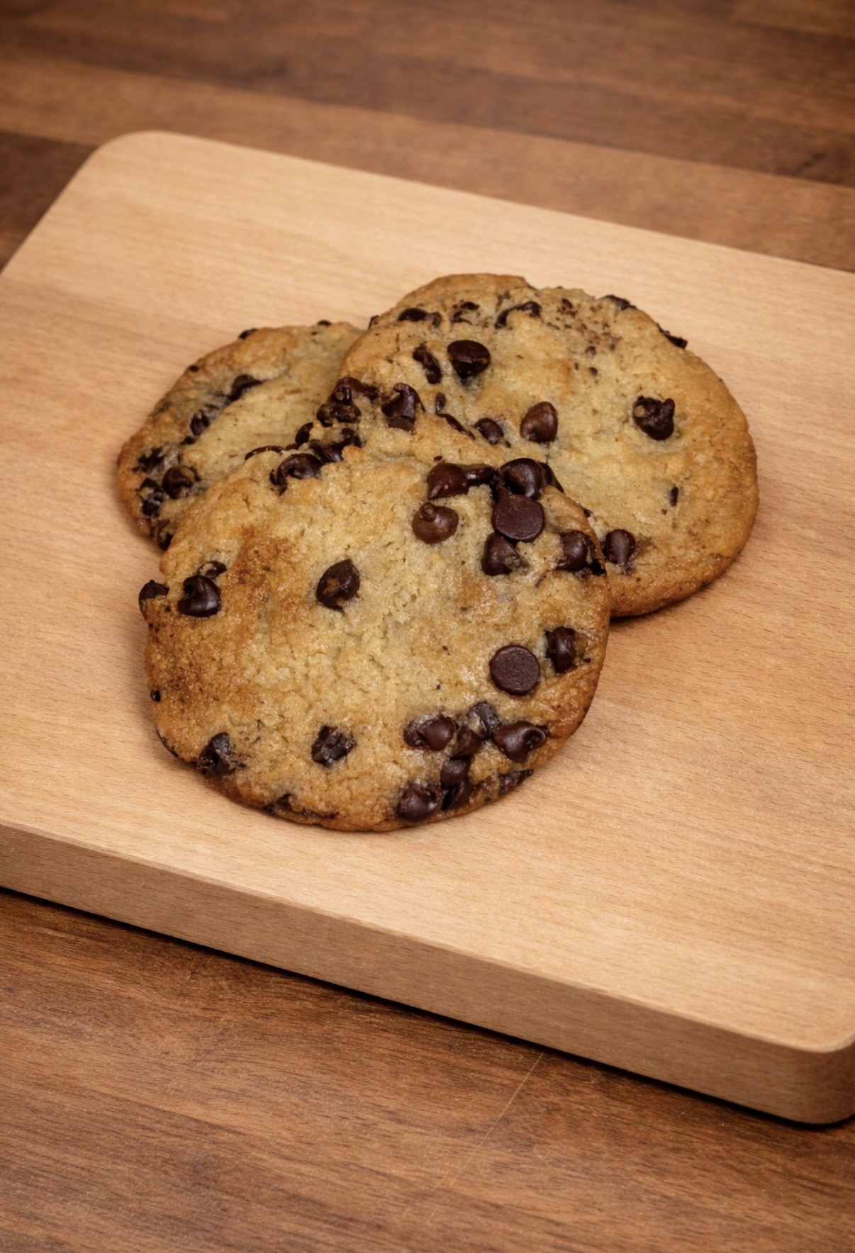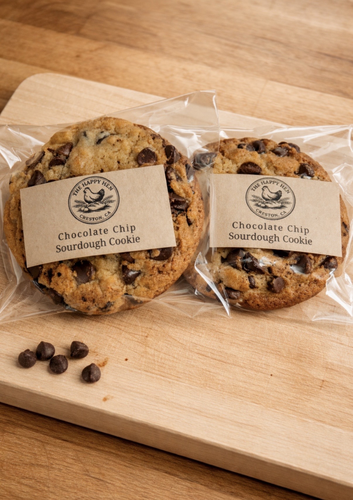 Our Sourdough chocolate chip cookies weigh 1/4 pound each and feature a crunchy exterior with a gooey, soft center. Topped with coarse sugar and flaky sea salt, they offer a delightful balance of sweet and salty flavors, with rich chocolate chips that add warmth and richness, making them a must-try for cookie enthusiasts.