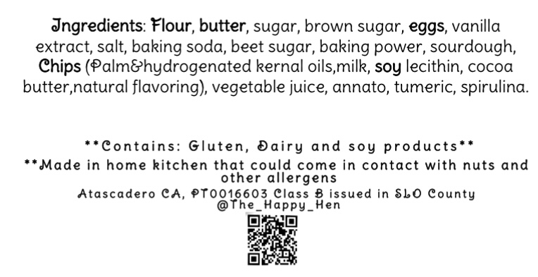 All Sourdough cookies made with our Farm Fresh eggs and homemade vanilla extract.