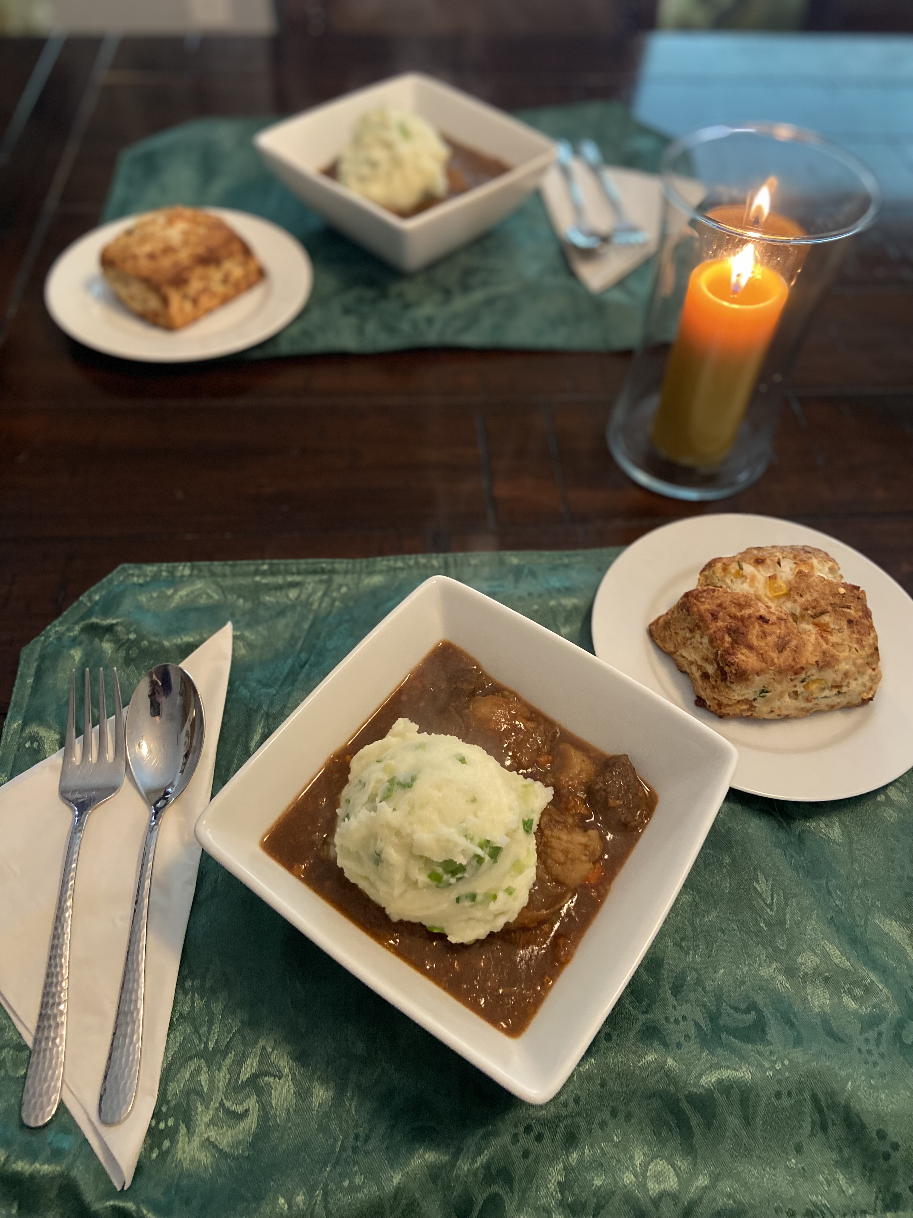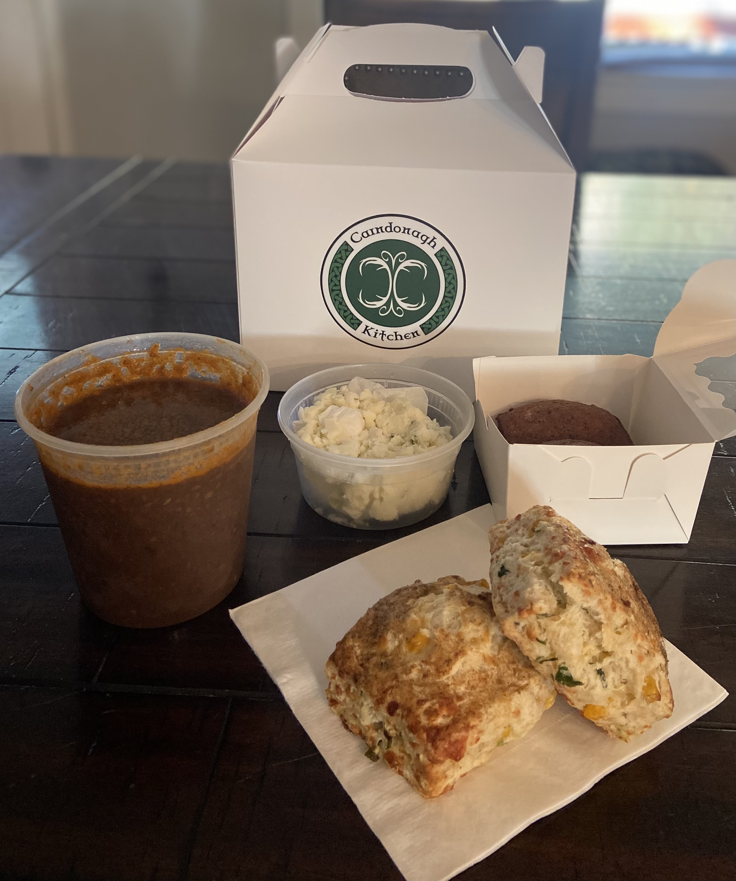 • Two Irish Cheddar, Corn & Chive Scones – savory, cheesy, and perfect for soaking up the stew