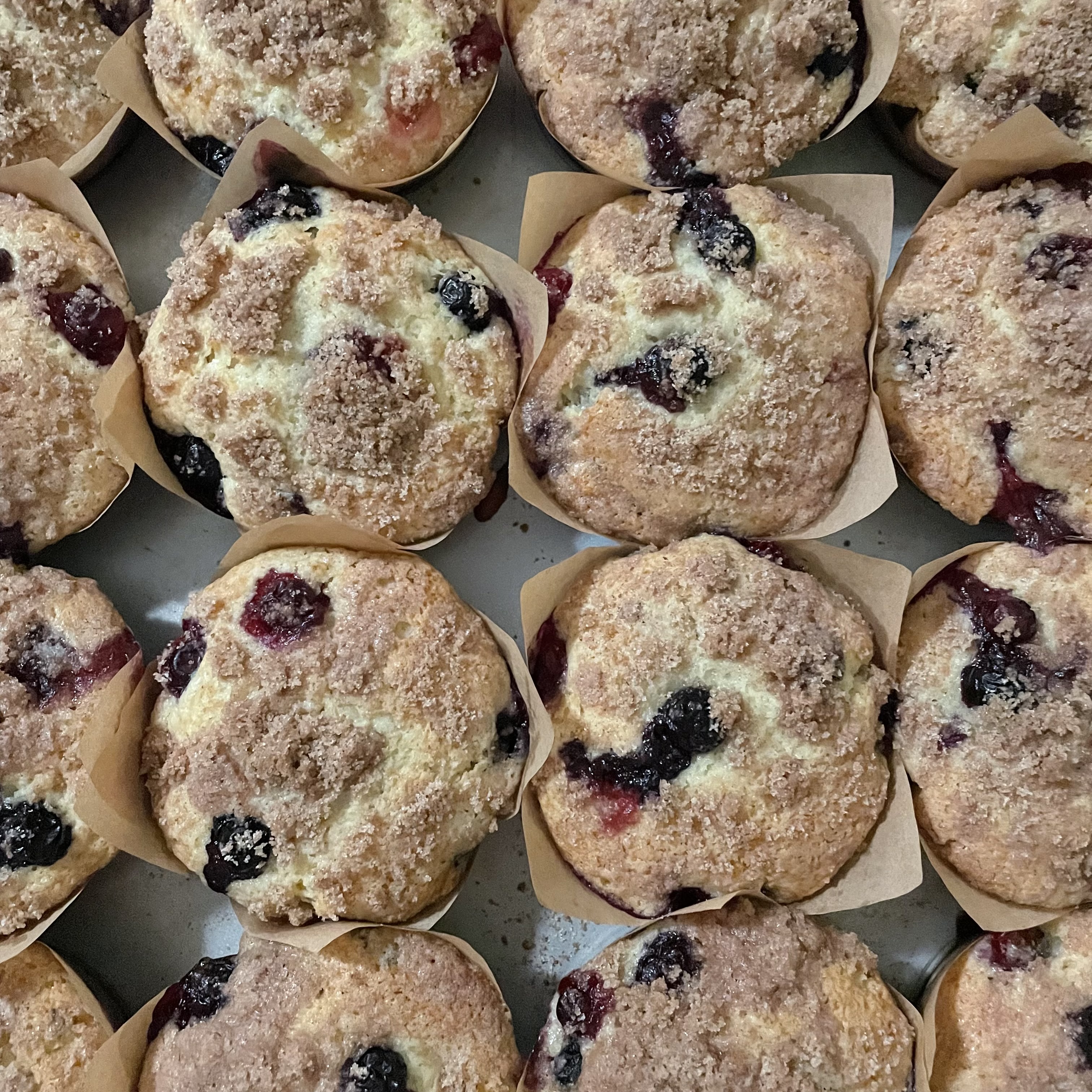 Moist lemon blueberry muffins topped with a streusel crumble. 4 muffins per order.