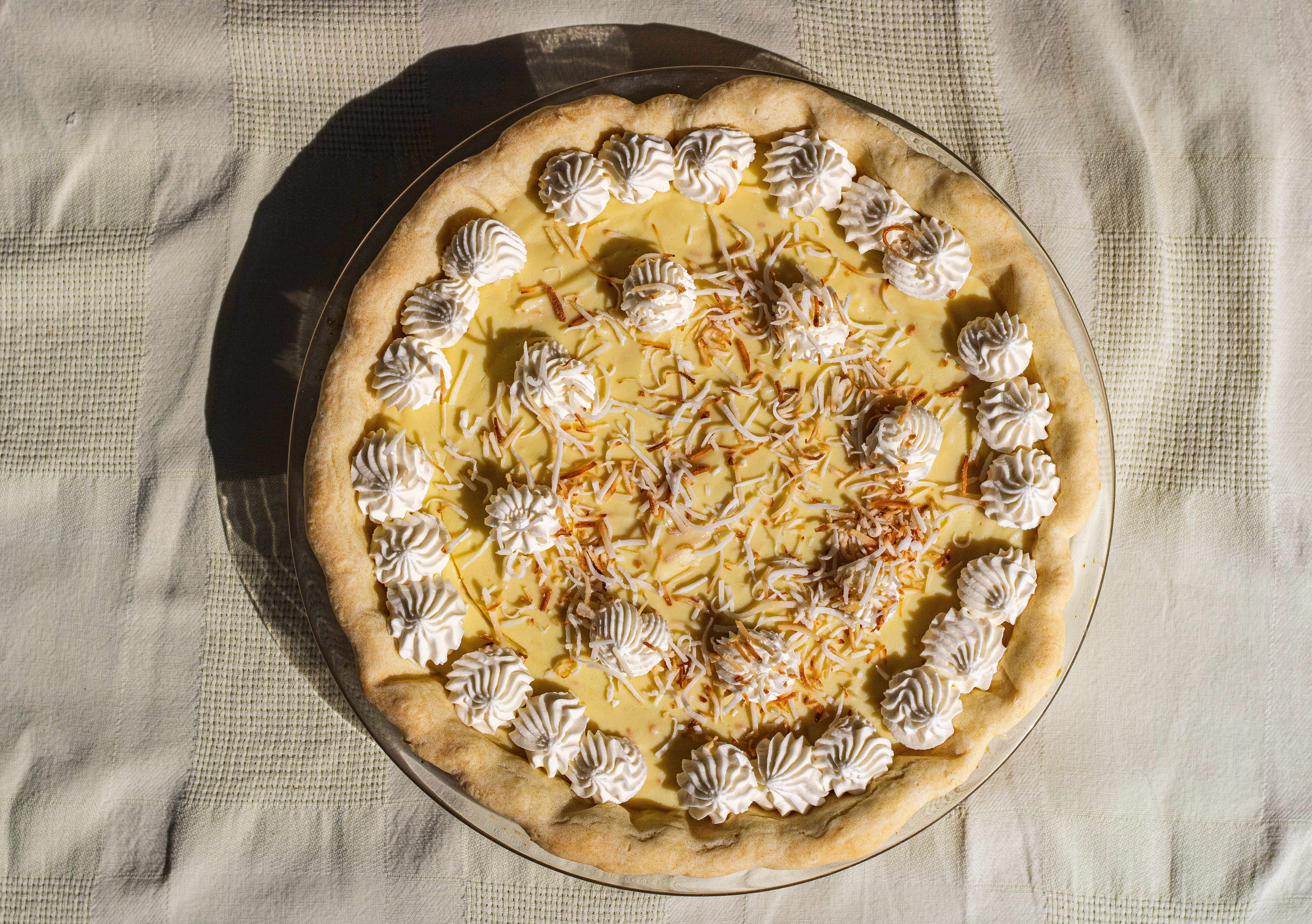 Filling: Coconut Milk, milk, sugar, egg yolks, butter, cornstarch, vanilla extract, coconut extract