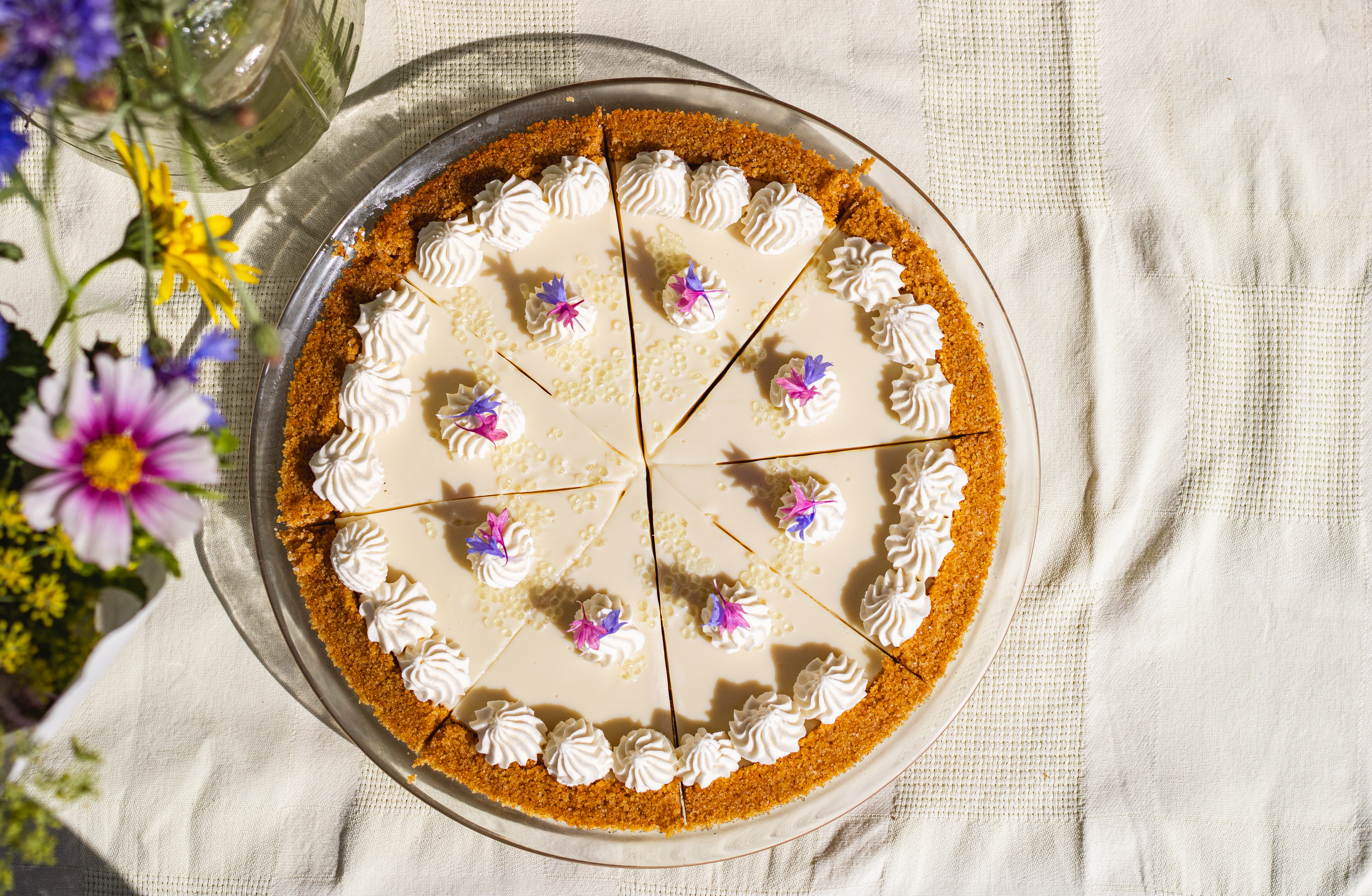 Toppings: edible calendula petals & finger limes 9" pie tin