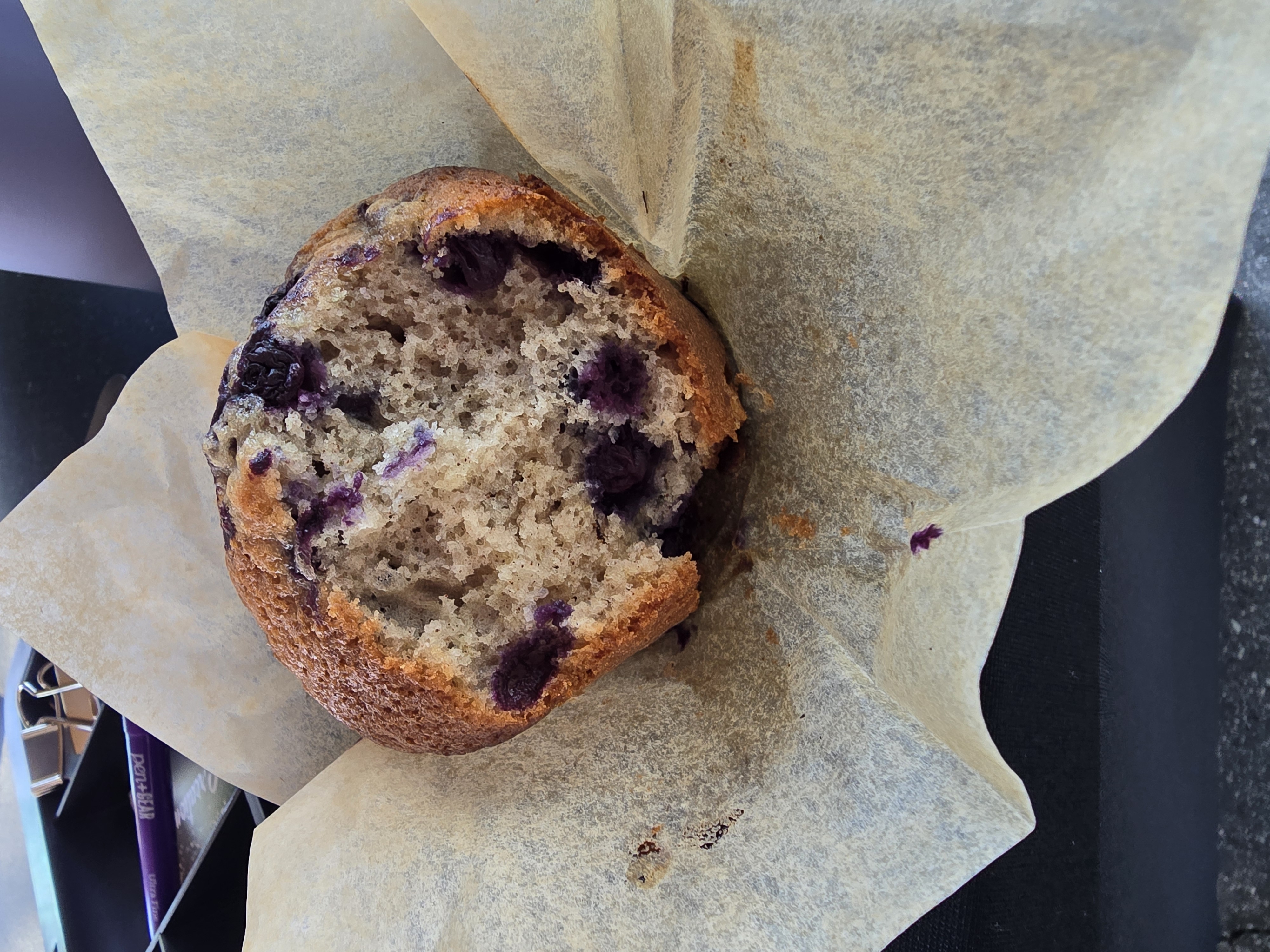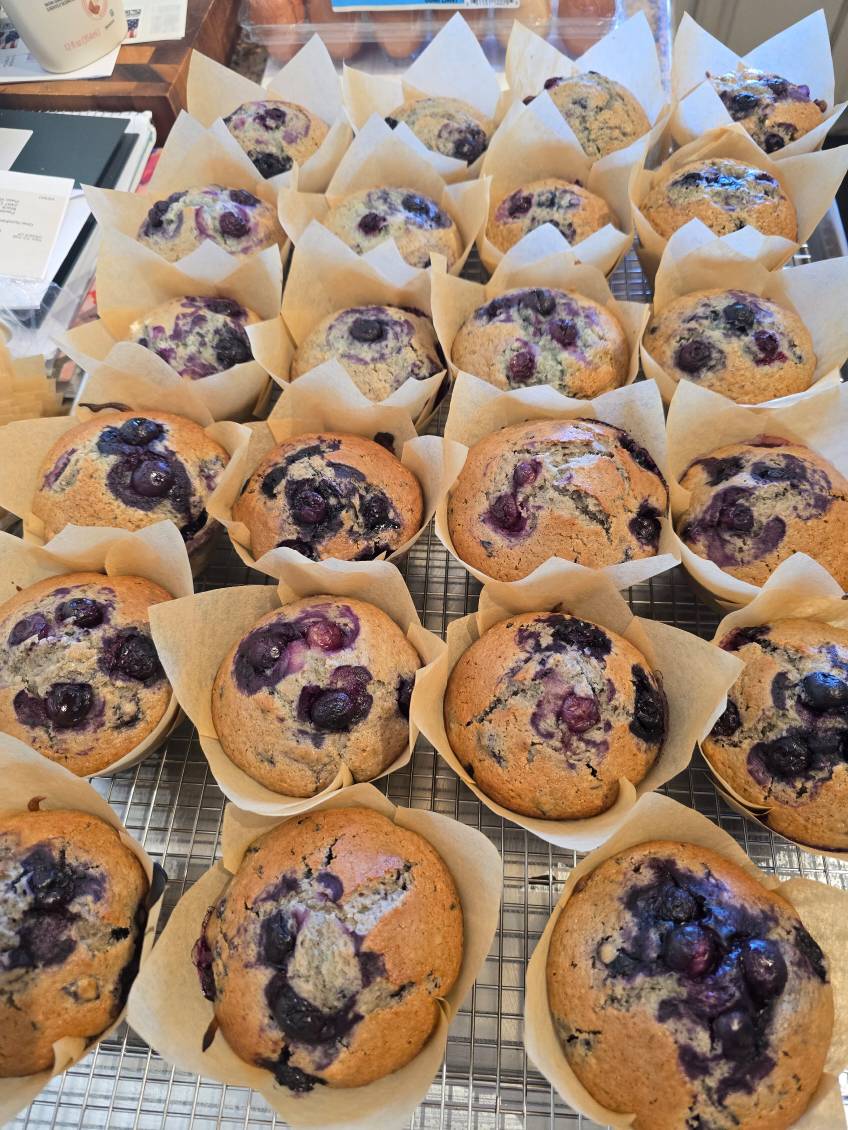 These are our number one muffins sold. Each muffin is filled with plump juicy blueberries and tender sourdough goodness.