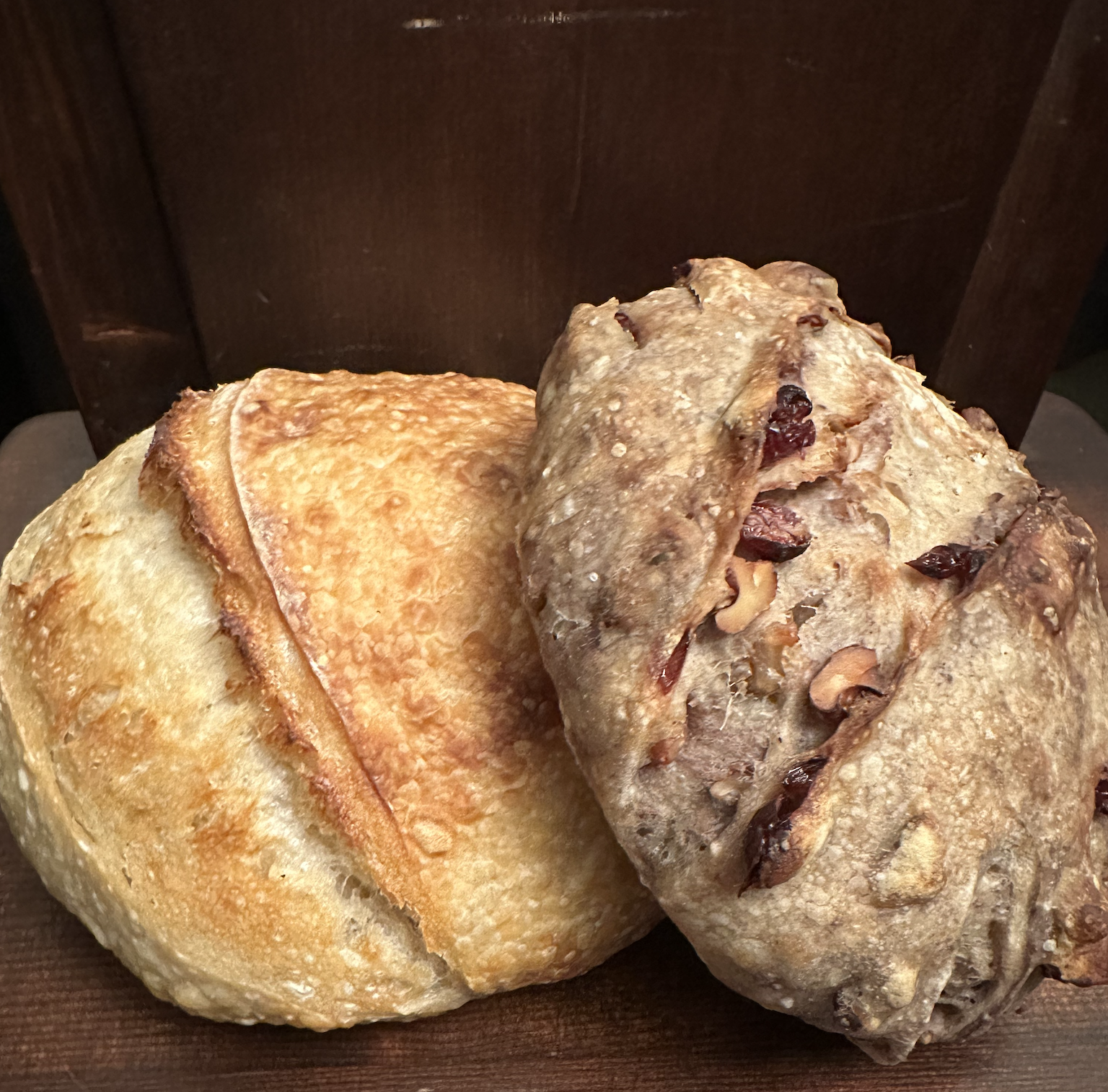 Ingredients: Sourdough Starter, Water, Bread Flour, Rye Flour, Wheat Flour, Craisins (Sweetened & Unsweeted), Roasted Walnuts, Goat Cheese, Salt