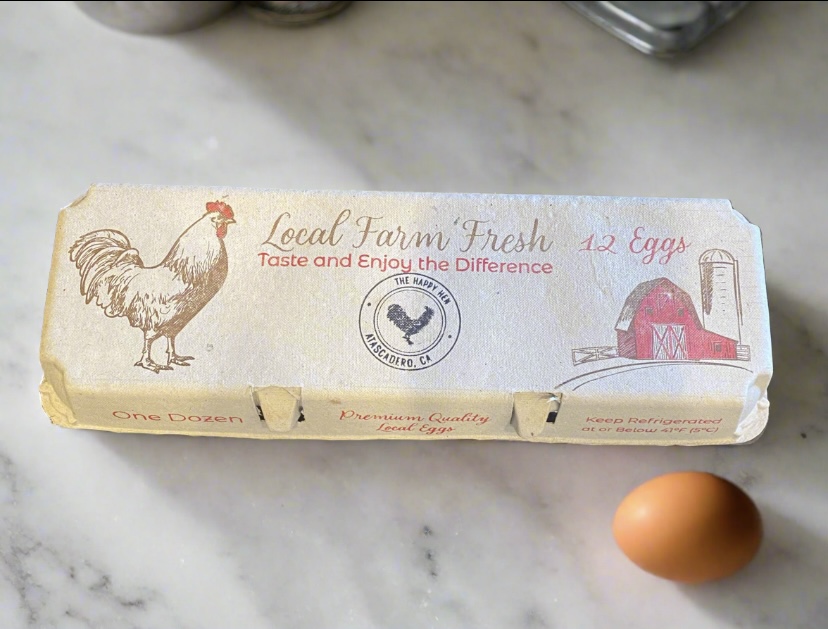 The Happy Hen is a small family hobby homestead. We raise 30+ pasture-raised chickens, fed locally sourced feed from Atascadero Hay & Feed.