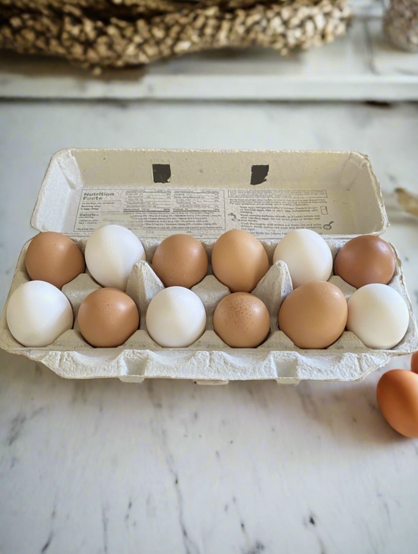 Our eggs are gently washed the day before delivery and are as fresh as you can get.