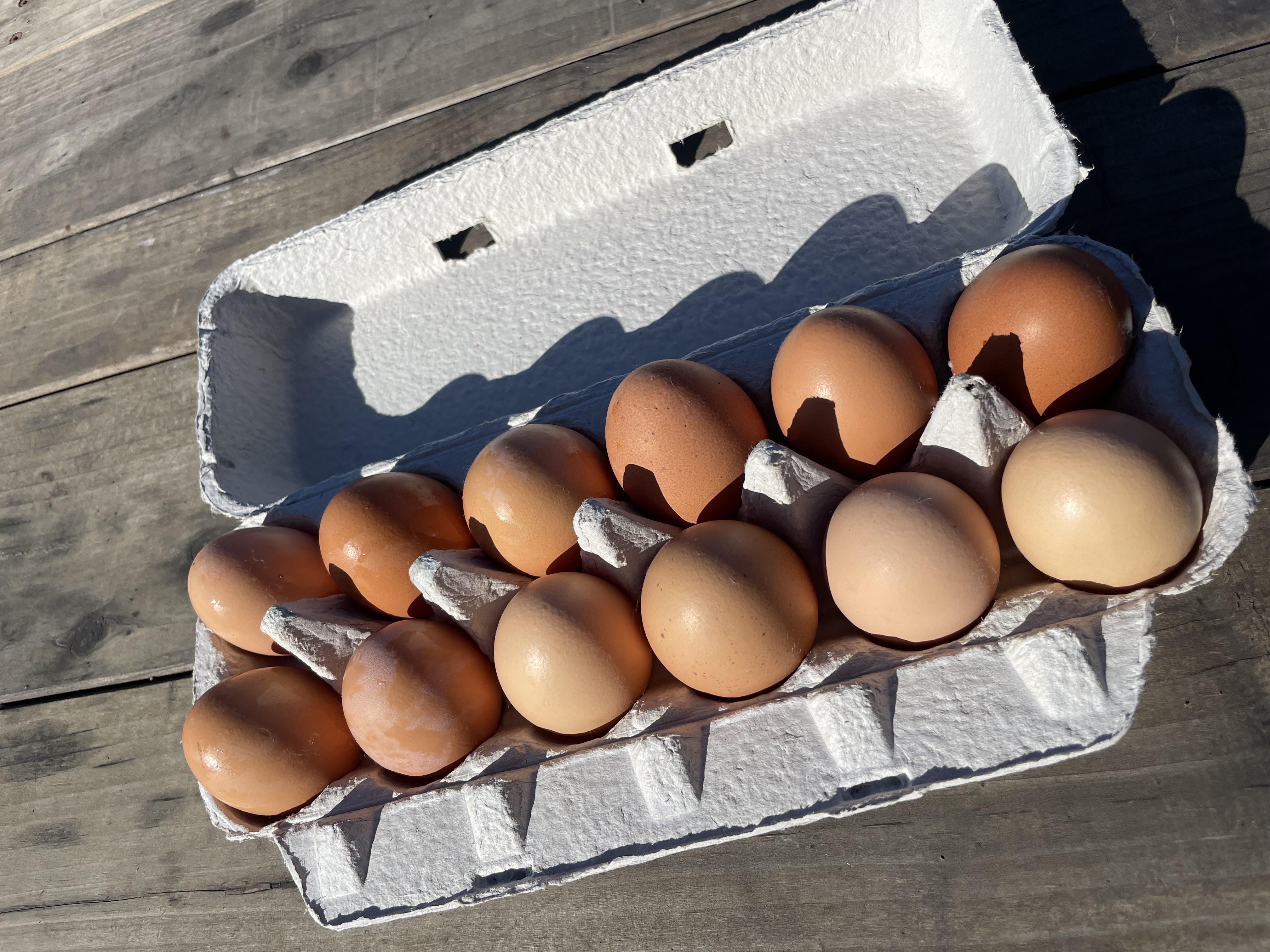 Delicious eggs with dark orange yolks. OOur chickens are raised Free-Range eating bugs, grass, and organic vegetables from our regenerative farm. Eggs are harvested daily and sold 2x/week. Eggs are unwashed, but clean of any debris. Follow us on instagram @cityfarmslo for the latest scoop on our flock!