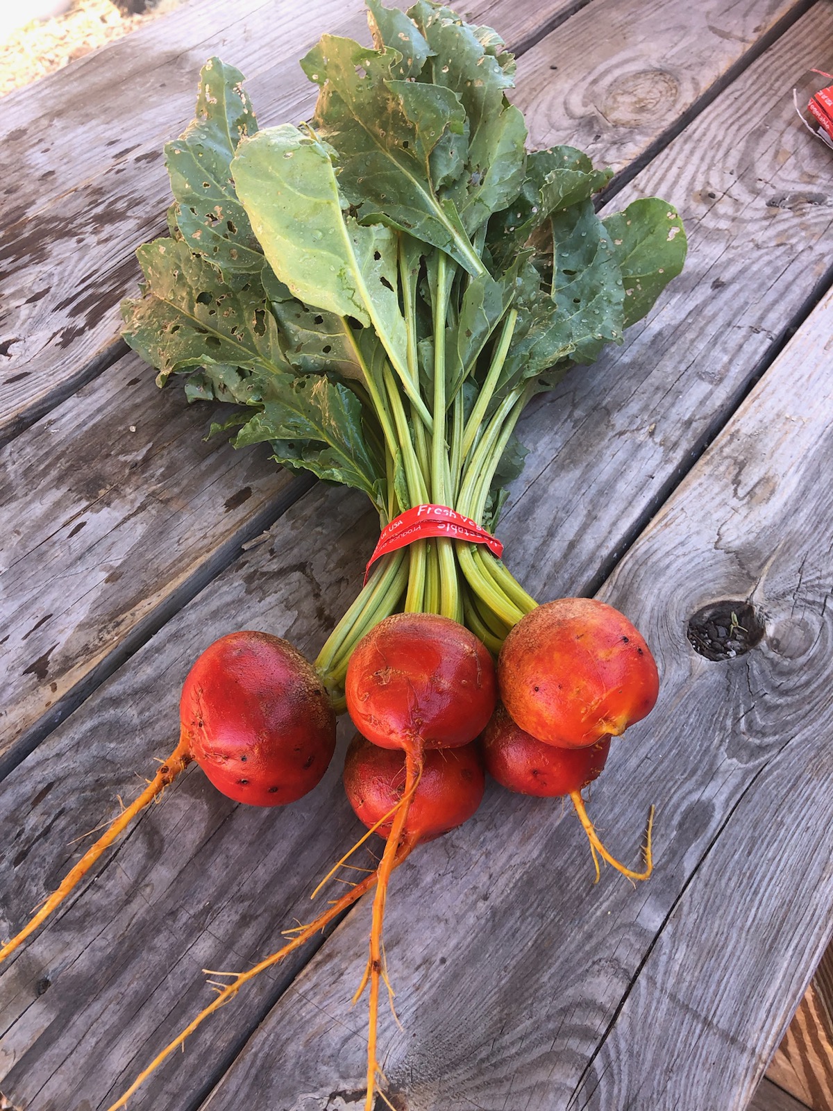 Golden beets tend to be on the sweeter side in the beet world. Their thin skin leaves the peeler in the drawer and lets you get down to buisness.