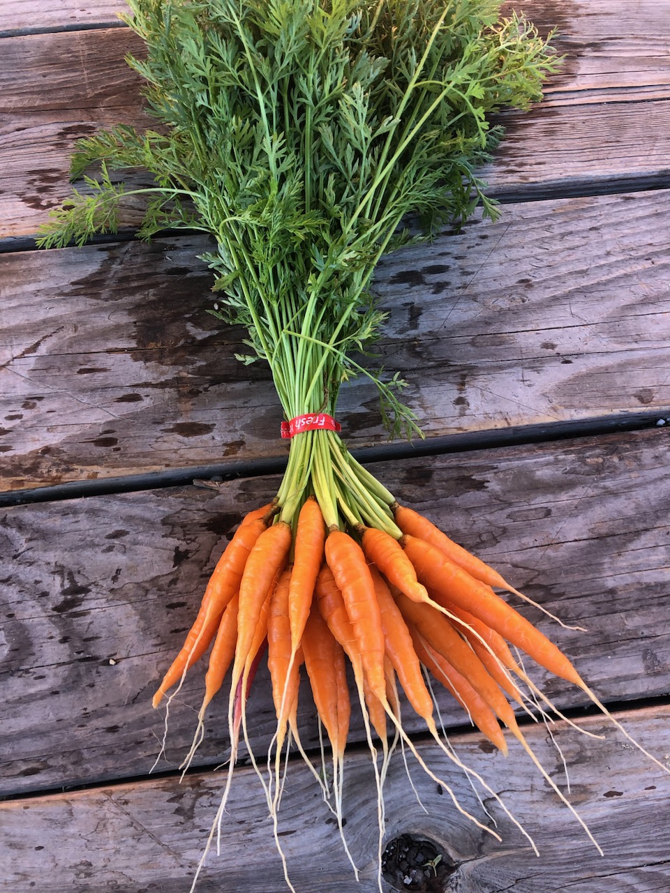 Nantes style carrot. This variety is known for its sweetness and high juice content. Priced at $3 bunch.