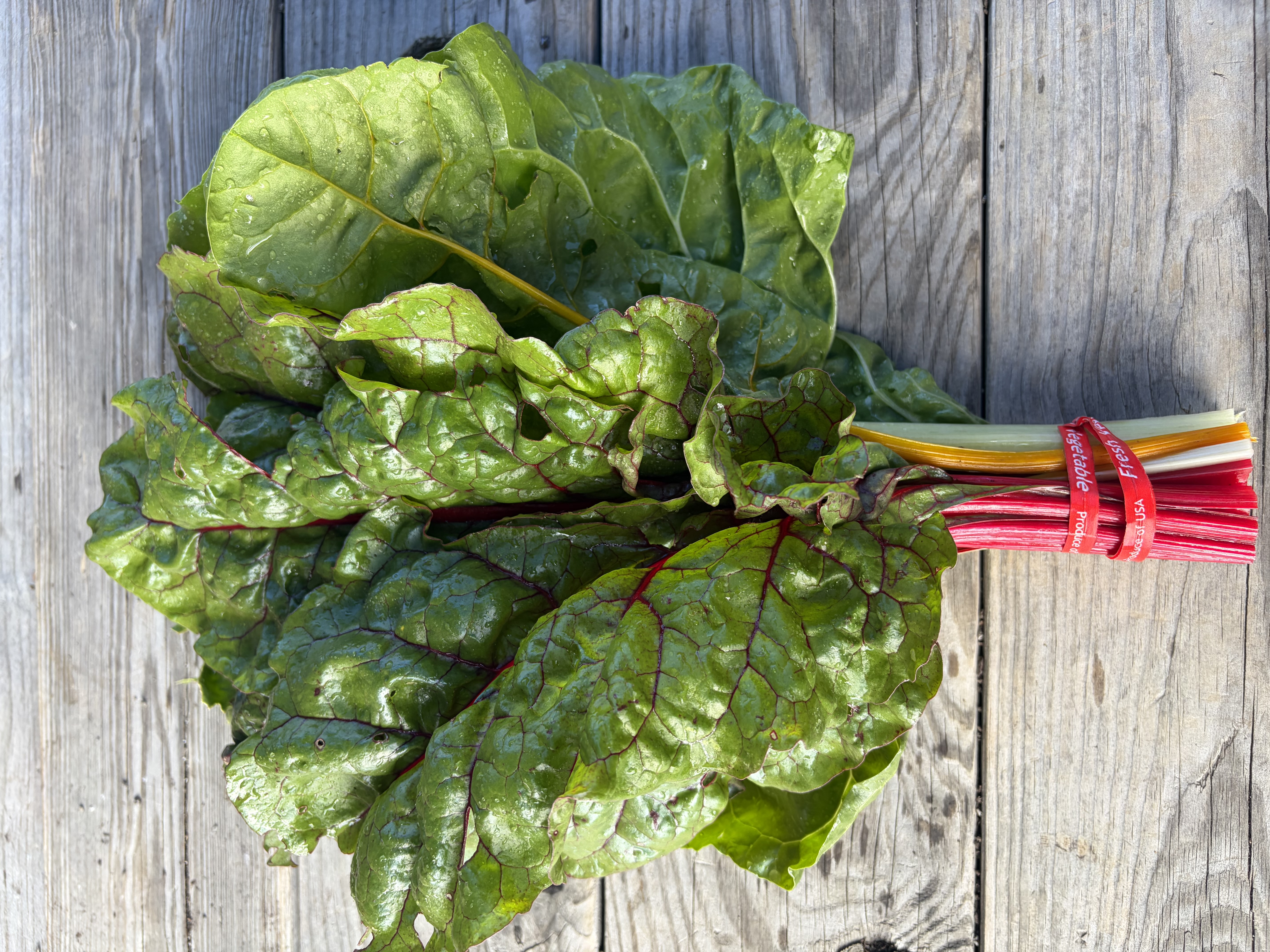 Rainbow chard is a tender green with a slight saltyness. Delicious sauteed and or mixed into scrambled eggs for that morning veggie bump.