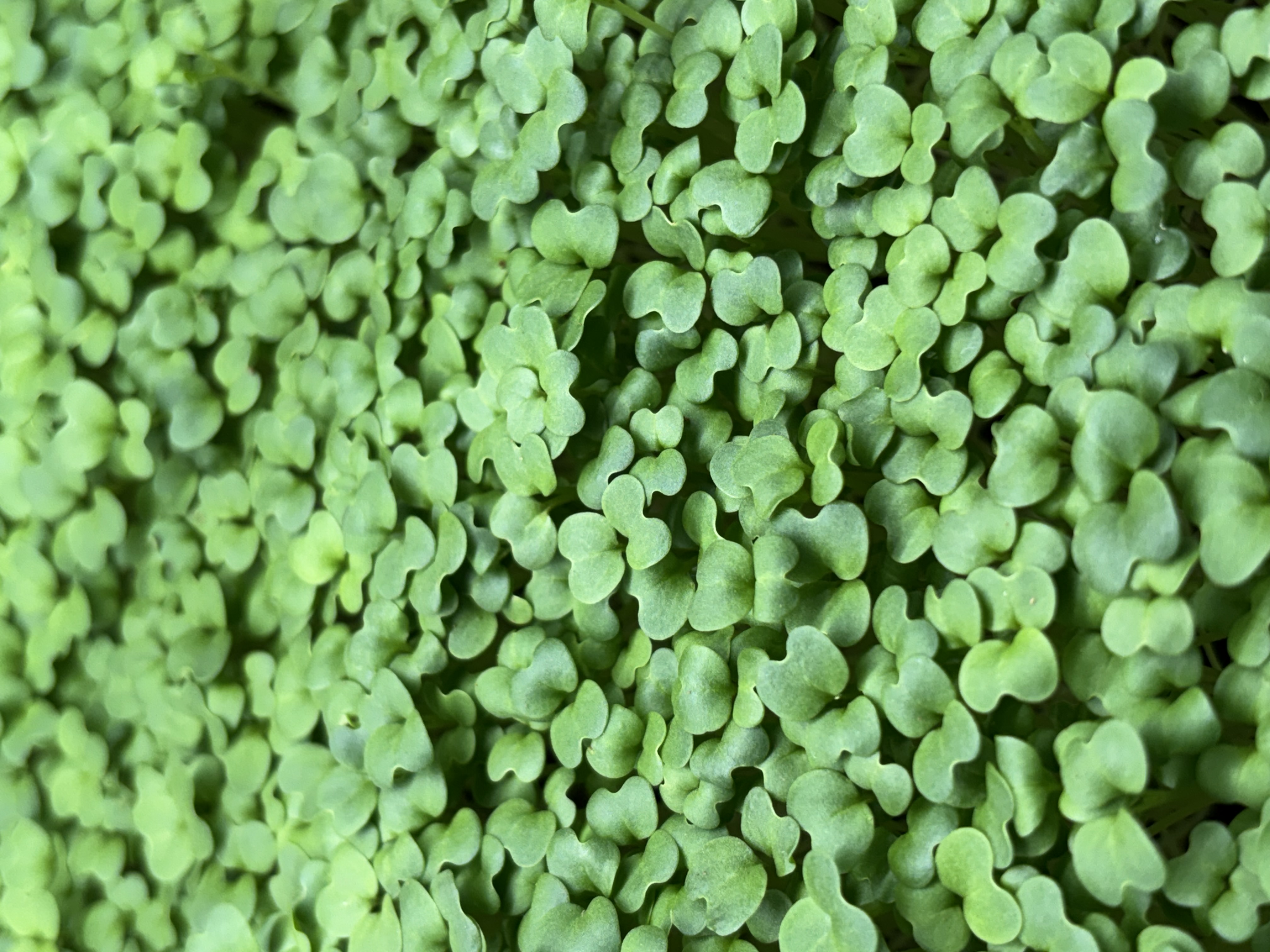 Our Wasabi microgreens are spicy mustard greens with a pungent, horseradish-like flavor, used to add a zesty kick to dishes like sushi, salads, sandwiches, and soups, and are rich in vitamins and antioxidants. They are not from the traditional wasabi root but offer a similar spicy sensation, providing a nutritional boost and visual appeal to meals.