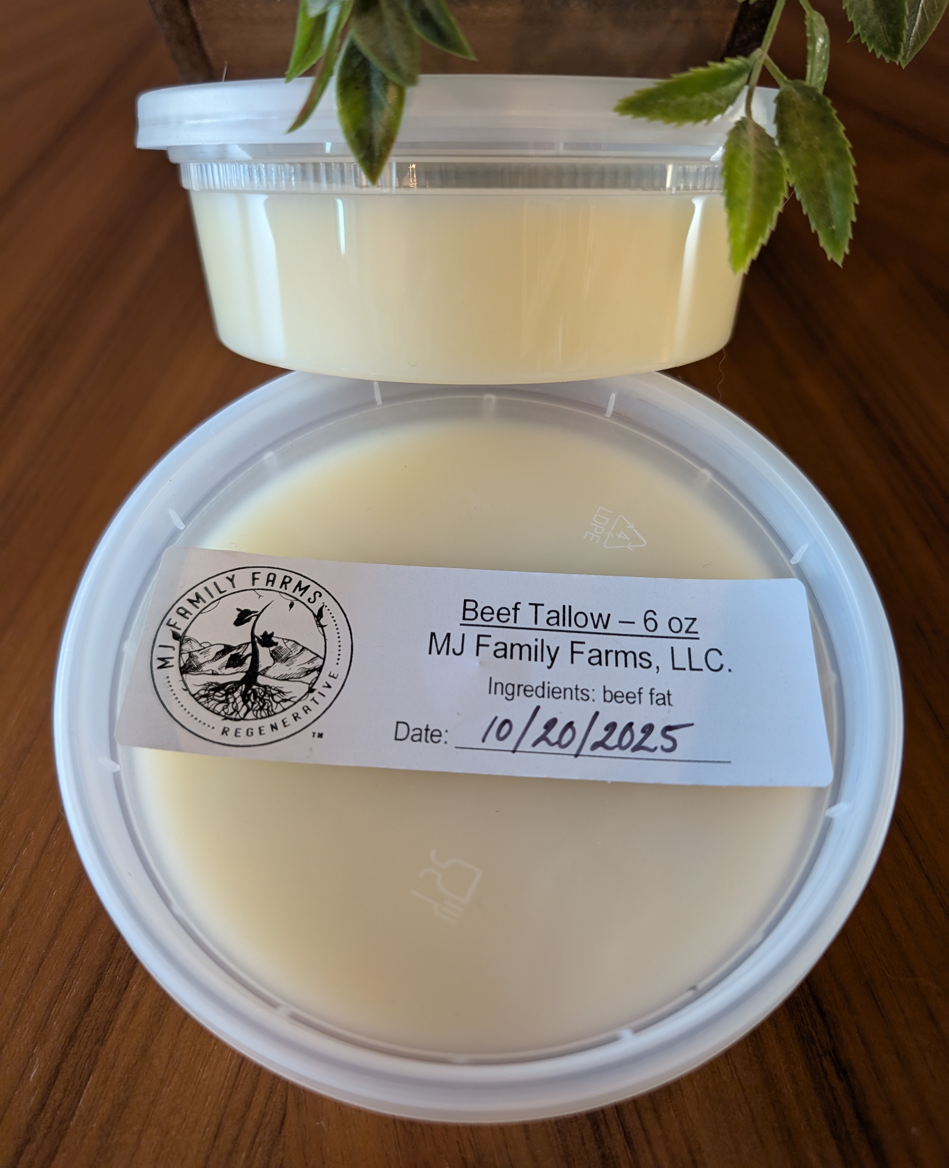 Our Farm-Made Tallow is rendered from the fat trimmings of high-quality, pasture-raised Angus beef. Every batch reflects our commitment to sustainability, and animal welfare. Rich in nutrients and naturally pure, this tallow is perfect for cooking with a higher than oil smoke point and beefy flavor. Our cattle graze freely on diverse pastures, contributing to soil health and biodiversity — ensuring that every container of tallow nourishes not only your body, but the land it comes from.