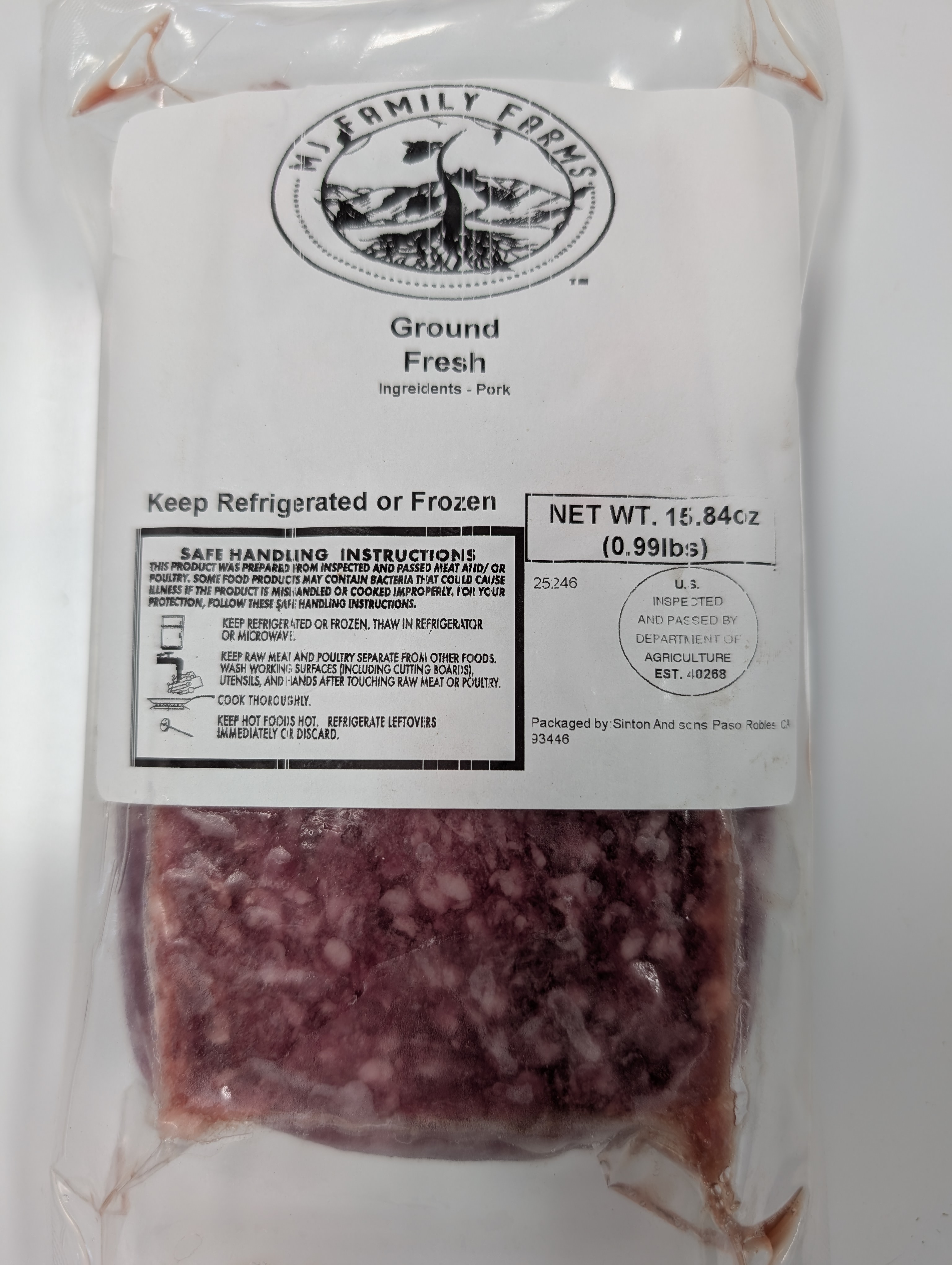Ingredients: Fresh ground pork (80/20) blend