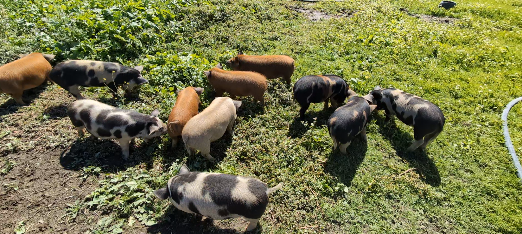 Our ground pork comes from KuneKune pigs — a rare, slow-growing heritage breed known for their tender, well-marbled meat and naturally docile, pasture-loving nature.