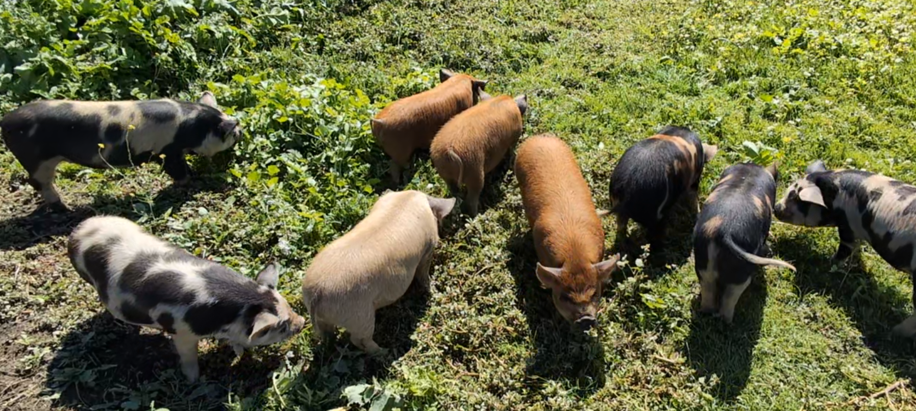 Raised entirely on open pasture using regenerative farming practices, our pigs live as nature intended: rooting in healthy soil, foraging diverse grasses, and helping rebuild ecosystems as they grow. These practices not only produce incredibly flavorful pork — they also restore the land, improve soil fertility, and sequester carbon.