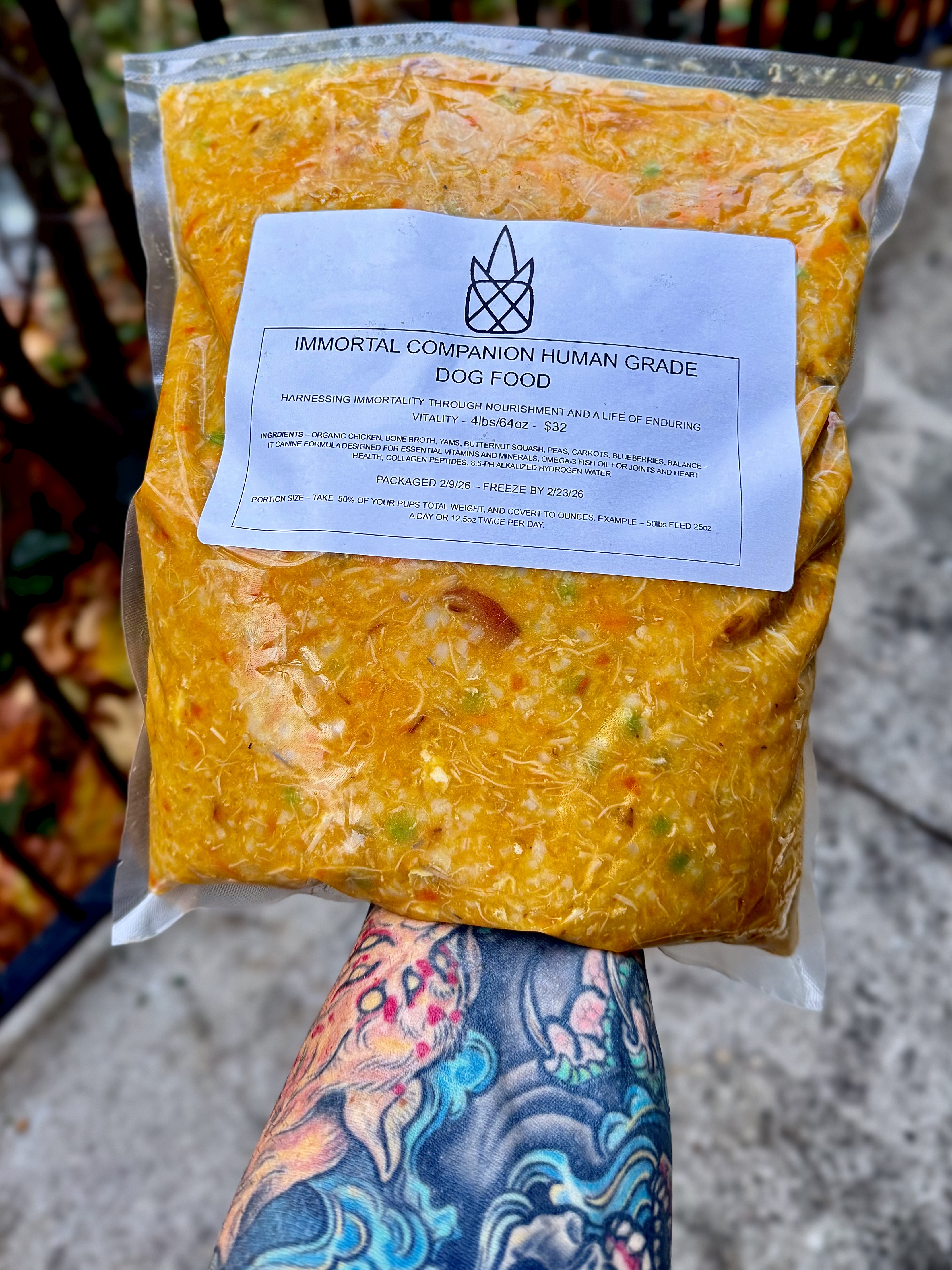 Immortal Pups is a fully balanced human grade canine nutrition protocol crafted to support vitality, strength, and long term health.