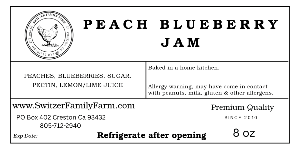This blend of Peaches and Blueberries makes for a delicious, unique jam that will surely be a hit with your family. It's mild light and fruity with just the right amount of peach to blueberry ratio. 8 oz