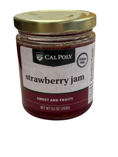 Sold by Cal Poly Made/Cal Poly Chocolates, Jam and BBQ Sauces in San Luis Obispo, CA. • This Product is an official Cal Poly student made product. • Learn By Doing. • Collaboration between Food Science & Nutrition Department and Cal Poly Strawberry Center • LIMITED EDITION!