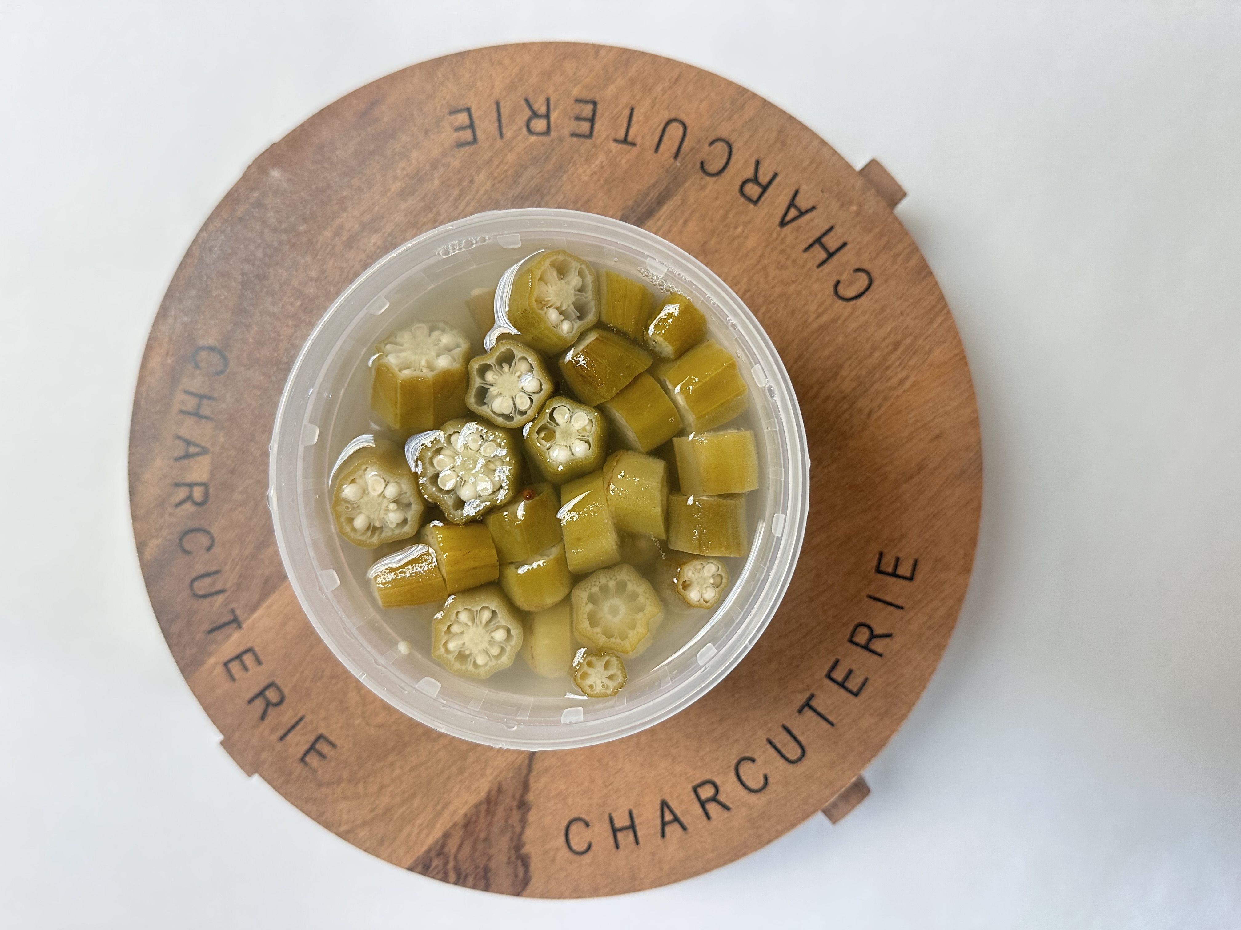 Cut okra pieces pickled in a zesty, spiced brine that enhances their natural flavor while keeping a firm, satisfying texture. A Southern-inspired classic with a tangy twist.
