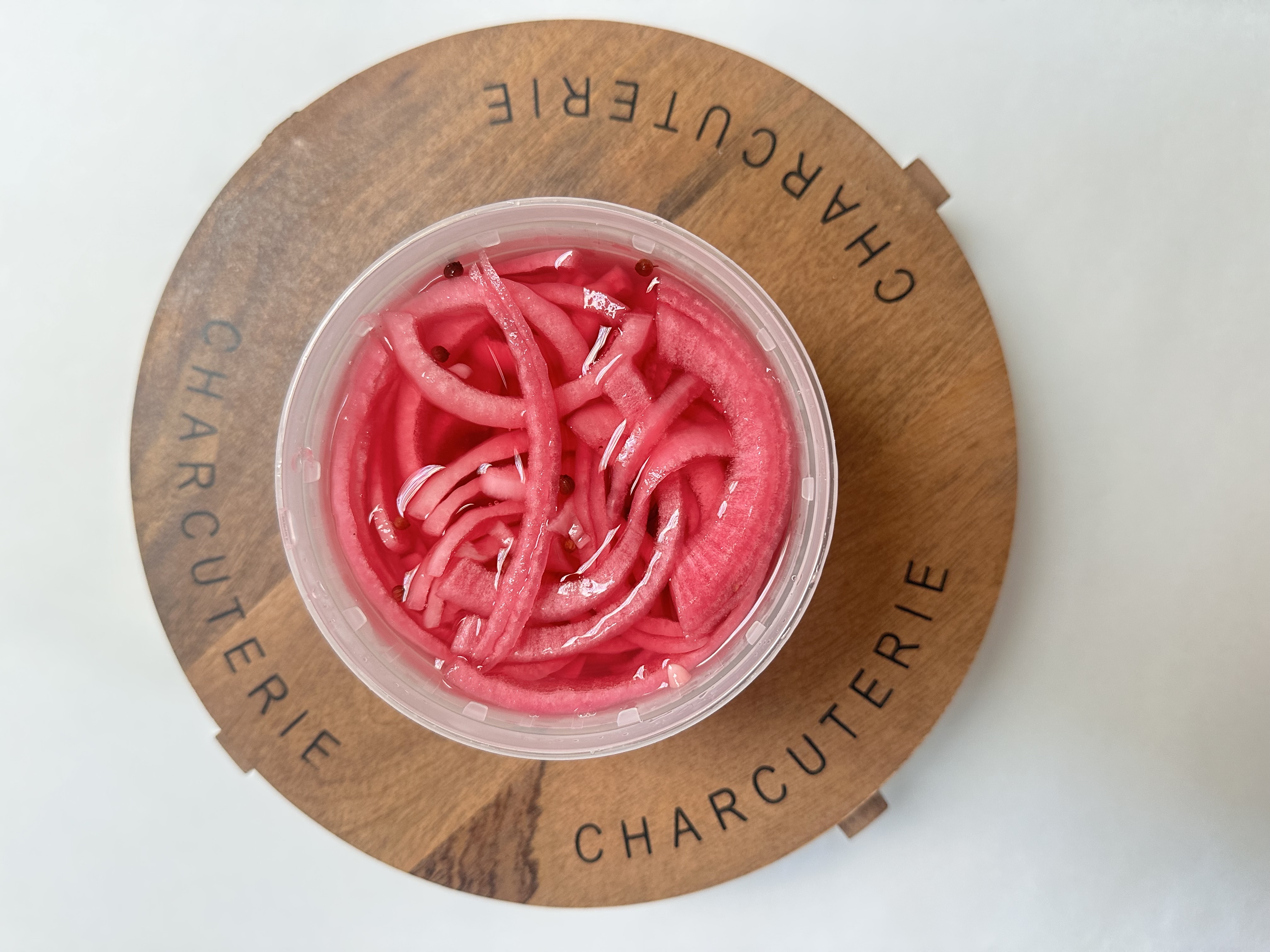 Vibrant red onions pickled to a perfect balance of tangy and slightly sweet, with warm spice notes. Crisp and flavorful—perfect for topping or snacking.