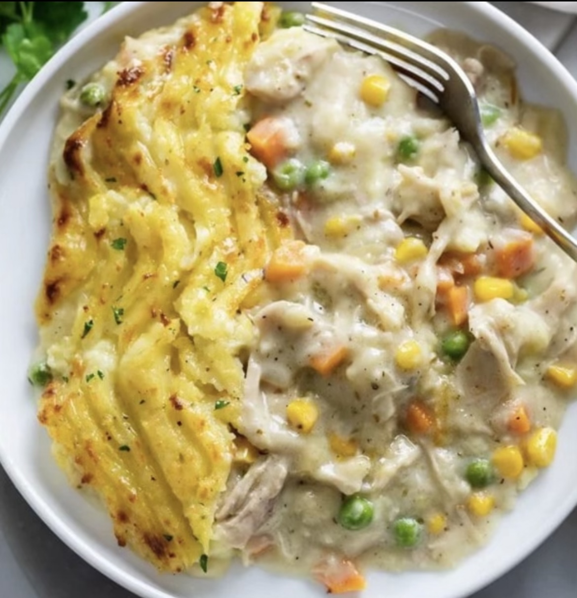 Organic chicken seasoned and slow cooked in our lactose-free garlic cream sauce, mirepoix, fresh peas, caramelized mushrooms, topped with ghee infused loaded potato puree and fresh herbs. All Clean Machine products are gluten free, dairy free, and refined sugar free.