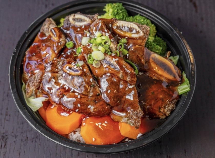 16oz Beef Short Rib Teriyaki includes: White steamed rice, vegetables (brocoli, cabbage, and carrots) beef short ribs drizzled with teriyaki sauce and spicy mayo (sauce is given on the side) topped with sesame seeds and green onions.