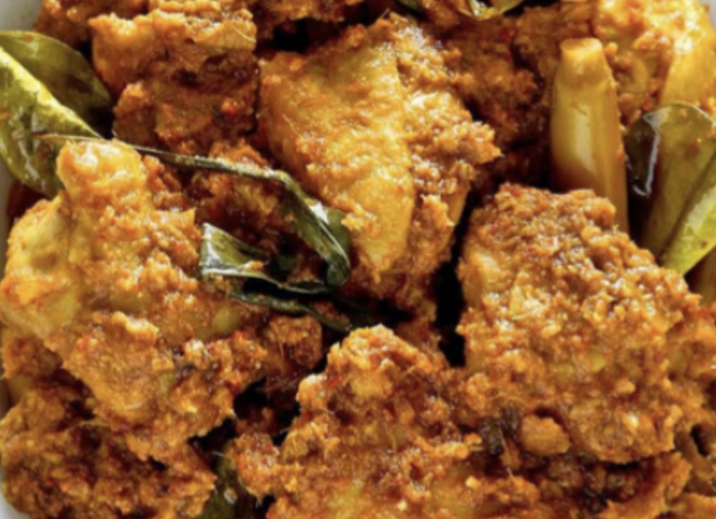 Chicken slow-cooked in fragrant spices, lemongrass, ginger, kaffir lime, cinnamon, clove, and coconut milk, served with charred greens and roasted yukon potatoes.
