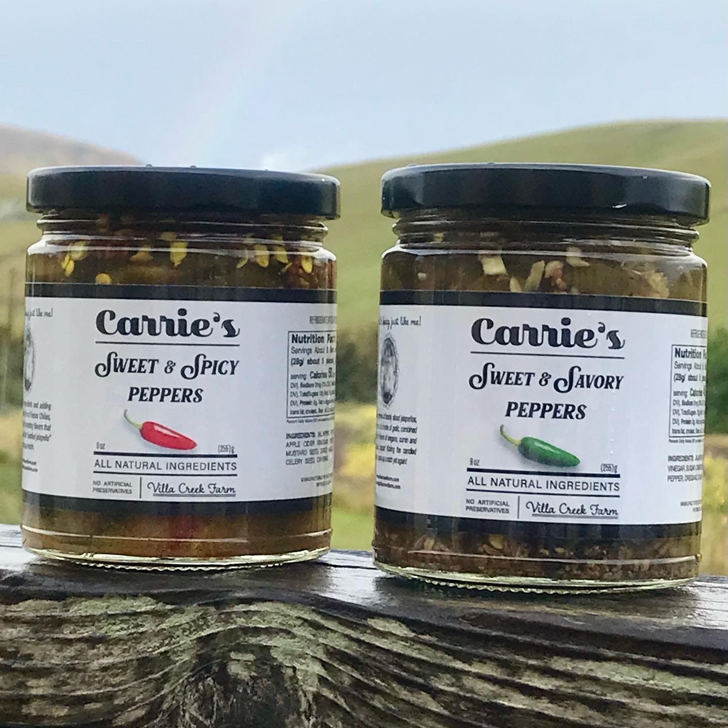 One each of Carrie’s Sweet & Spicy and Carrie’s Sweet & Savory Peppers. Perfect for a hostess gift, corporate gifting, or treat for your own amazing self. Perfect on pizza! Try it on tuna! Burgers, hotdogs, potato salad, even chicken salad! For the easiest appetizer ever, pour a jar over cream cheese and enjoy with crackers.